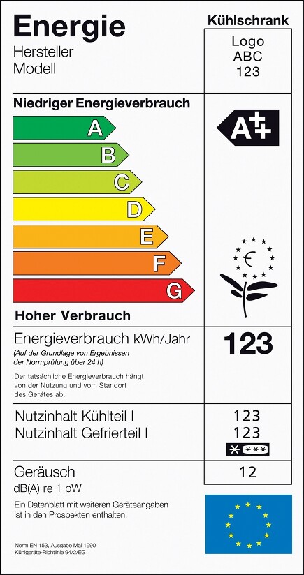 Damit Sie auf den ersten Blick wissen, ob Sie beim neuen Hausgerät Ihrer Wahl einen umweltfreundlichen Stromsparer oder aber einen teuren Stromfresser vor sich haben, gibt es das EU-einheitliche Energieetikett (EU-Label), das auf fast allen Kühl- und Gefriergeräten, Geschirrspülern, Waschmaschinen, Wäschetrocknern, Elektrobacköfen und Raumklimageräten zu finden ist.