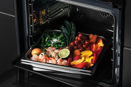 In Kombination mit dem Backofen eröffnen sich ganz neue Möglichkeiten: Während oben der Auflauf gratiniert, gart unten das Gemüse schonend im Dampf. Zwei Gerichte, ein Arbeitsgang – das spart Zeit und Energie.