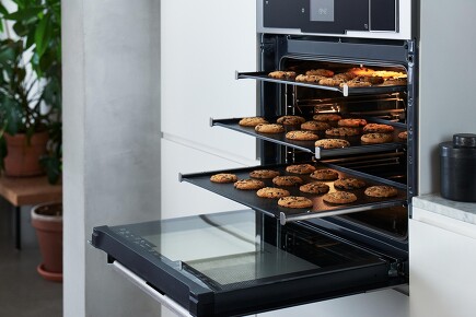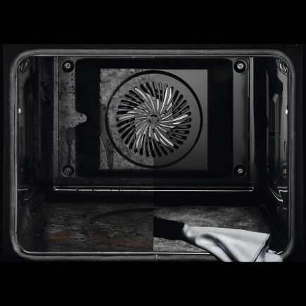 Der extra große Garraum bietet mehr Platz für perfekte Ergebnisse, und mit Aktivierung der Pyrolyse-Selbstreinigungsfunktion verwandeln sich bei ca. 480 °C Schmutz, Fett und Essensreste zu Asche. Nach Abschluss der Reinigung lassen sich die Rückstände im Handumdrehen mit einem feuchten Tuch auswischen.